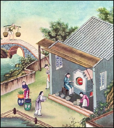 Four où l'on cuit certaines couleurs et la dorure. Gouache. Haut. 30 cm.