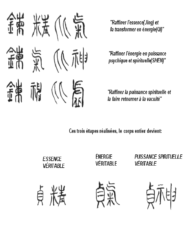 la quiétude (Ciel), l'enracinement (Terre) et l'assouplissement (Homme).